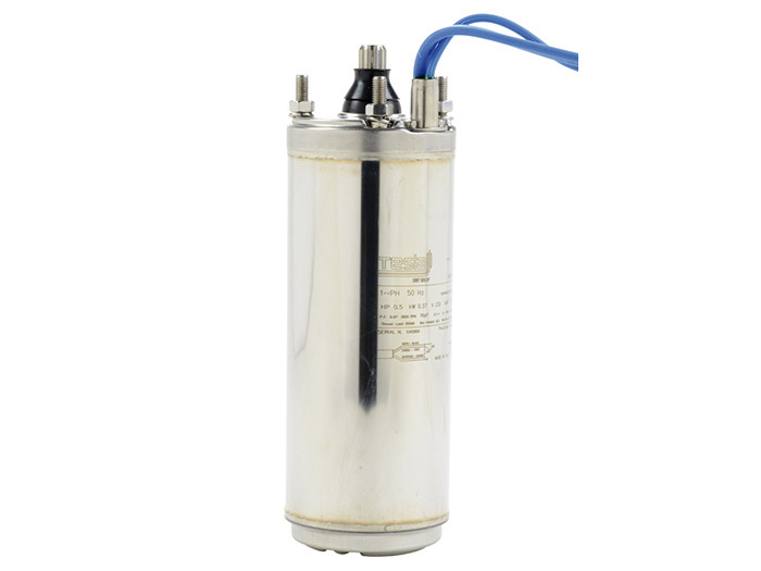 Moteur électrique 4" immergé de type asynchrone à deux pôles, entièrement construit en acier inoxydable AISI 304 pour les parties en contact avec l’eau.