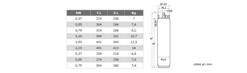 Moteur de pompe immergée normalisé utilisable sur toute marque de pompe immergée.
