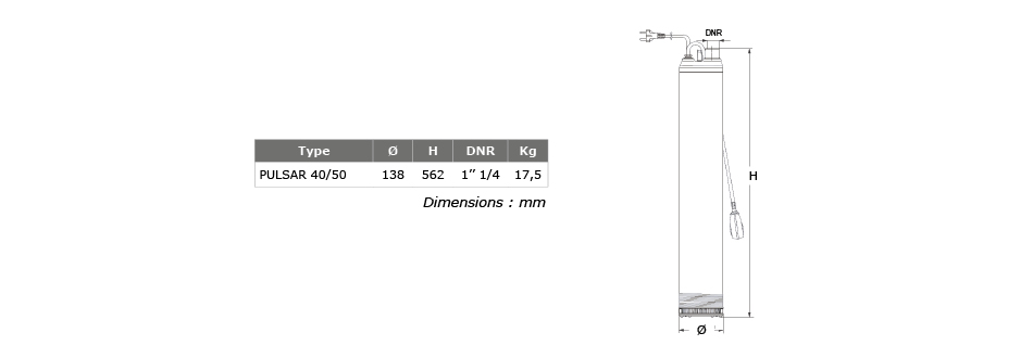 Diamètre orifice de refoulement : 1"1/4 gaz.