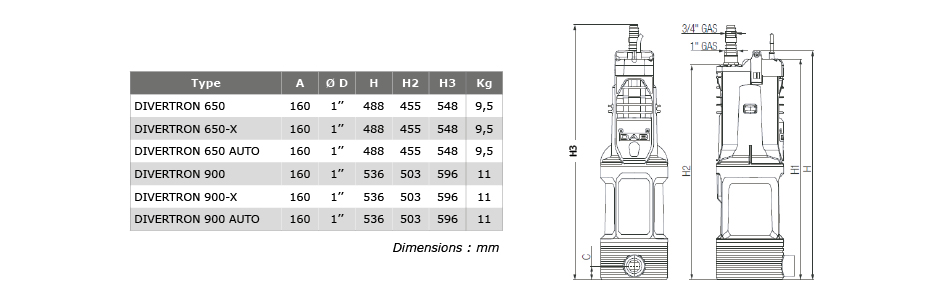Diamètre de refoulement : 1"F.