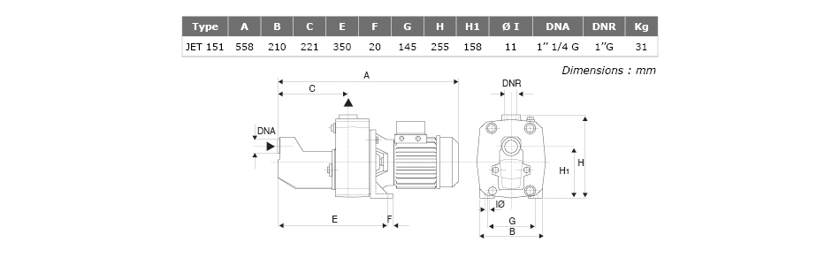 Pompe Jet horizontale auto-amorçante préconisée pour la surpression domestique, agricole et industrielle avec réservoir à vessie.