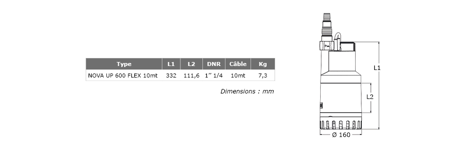 Submersible eau claire NOVA-UP 600 - AUTO. FLEX 10mt - Mono 230 V