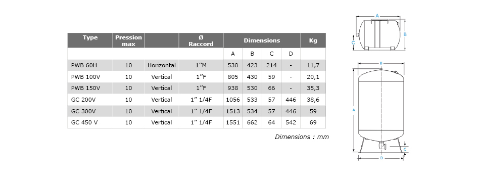 Réservoir pour distribution d'eau sous pression. Double diaphragme.